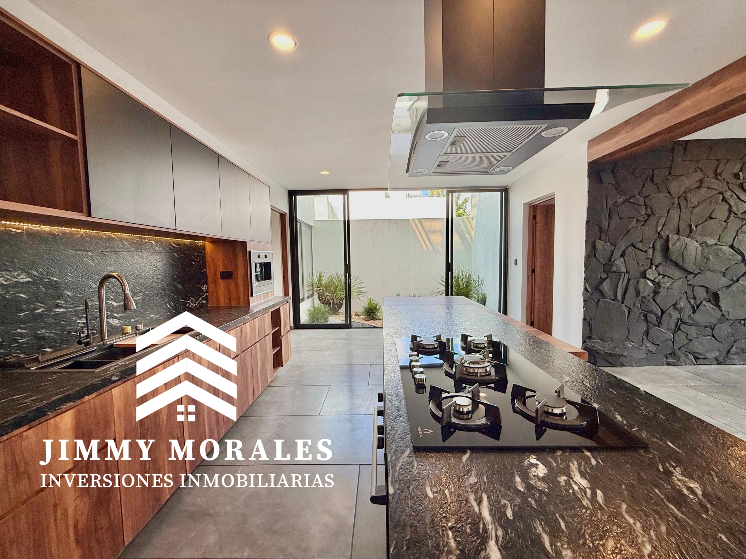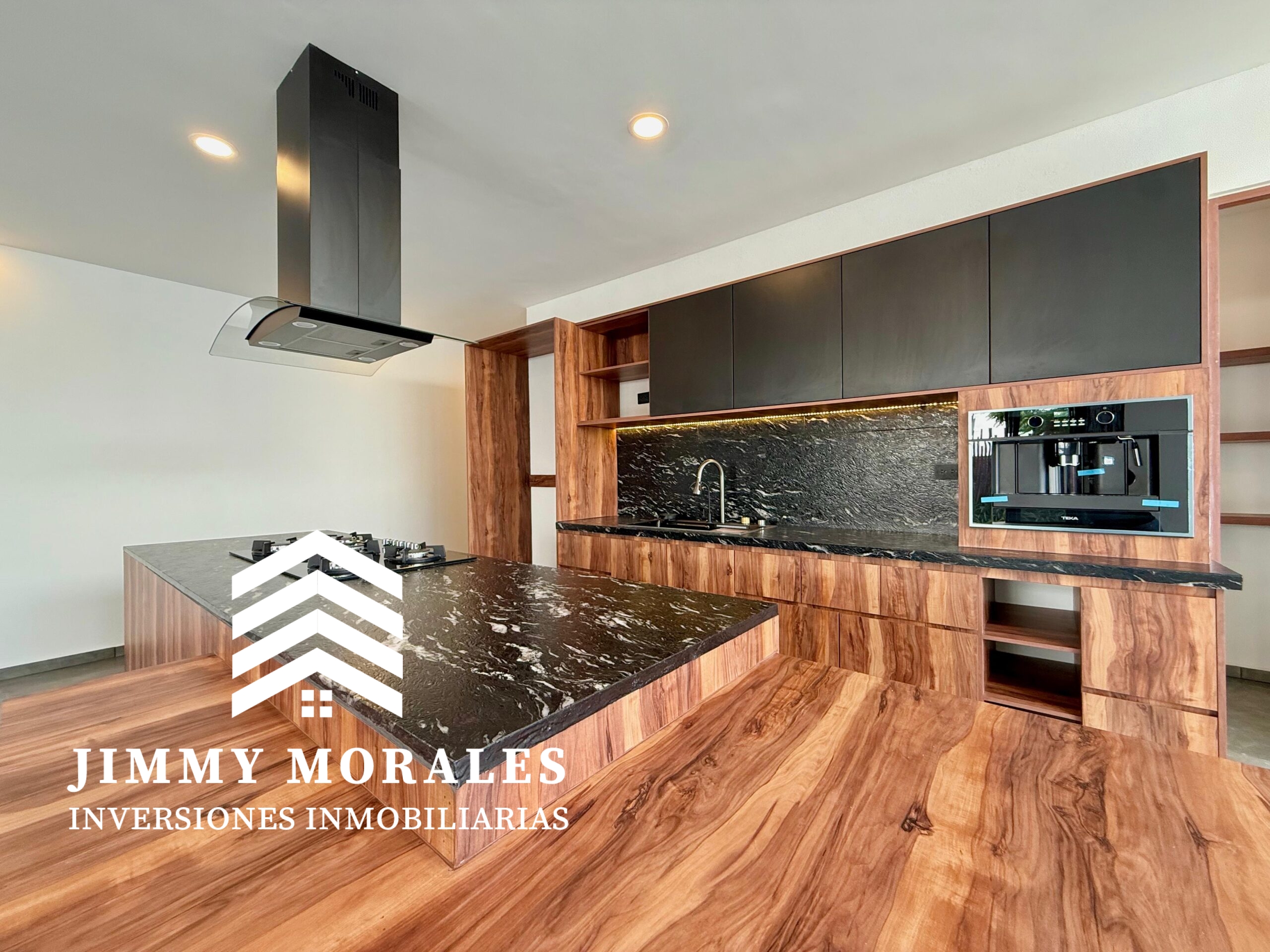 -Cocina abierta con isla, torre de hornos con cafetera