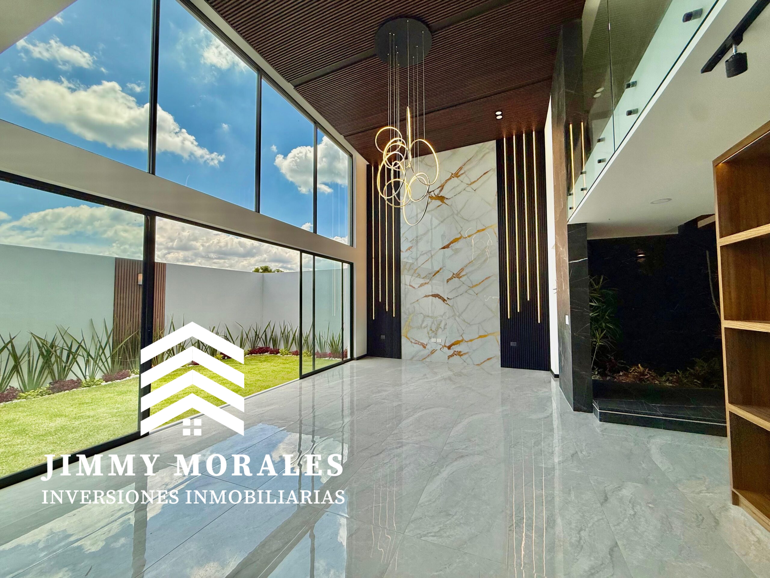 -Sala – comedor con doble altura con vista hacia el jardín